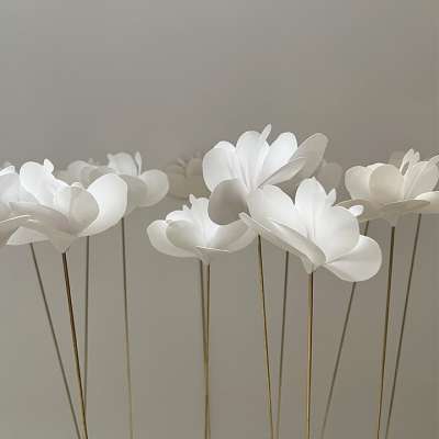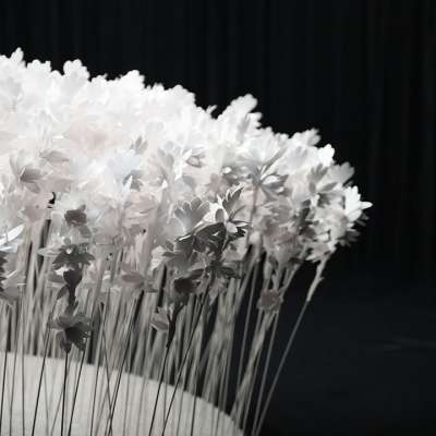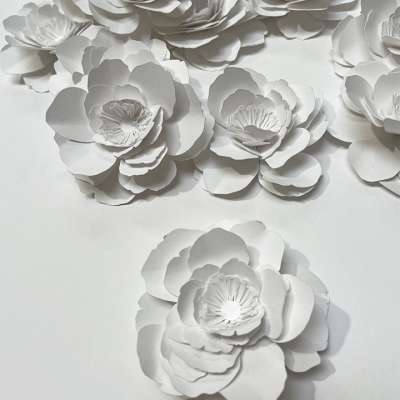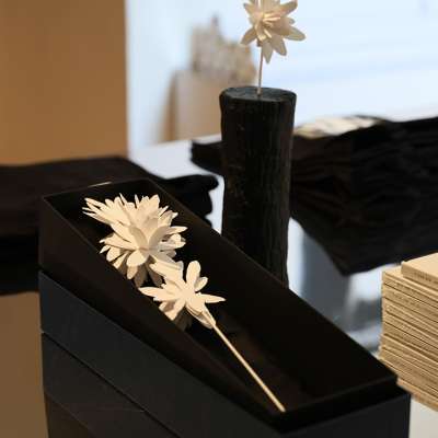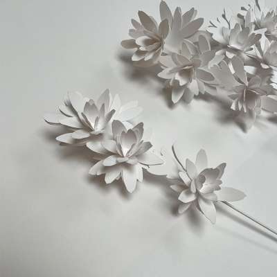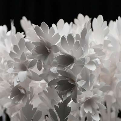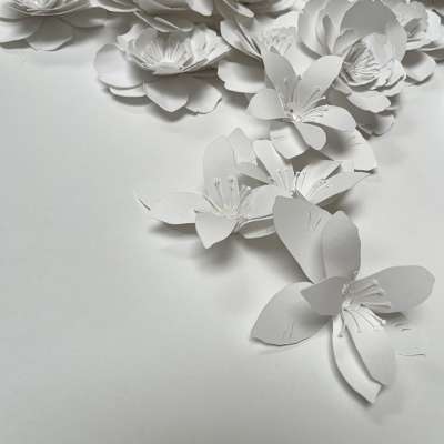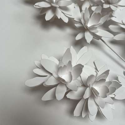 Marjorie Colas develops a poetic, nature-inspired universe in which paper becomes an architectural medium. Hand-cut, folded, patinated, and sometimes gilded with gold leaf, her creations unfold into delicate, dreamlike compositions that play with light, shadow, and fragility.