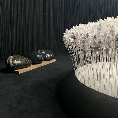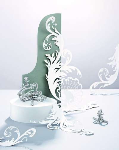 She collaborates with leading houses to create sets, window displays, and installations - both ephemeral and permanent, as well as refined objects and set design.